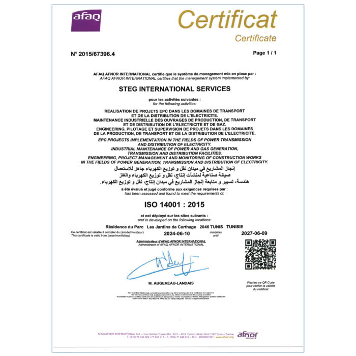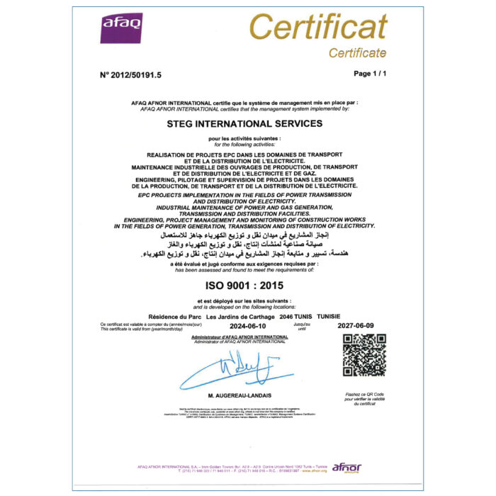 La STEG-IS s'est fixée pour objectif d'améliorer constamment ses processus par la mise en place d'un système de management intégré Qualité Sécurité Environnement.